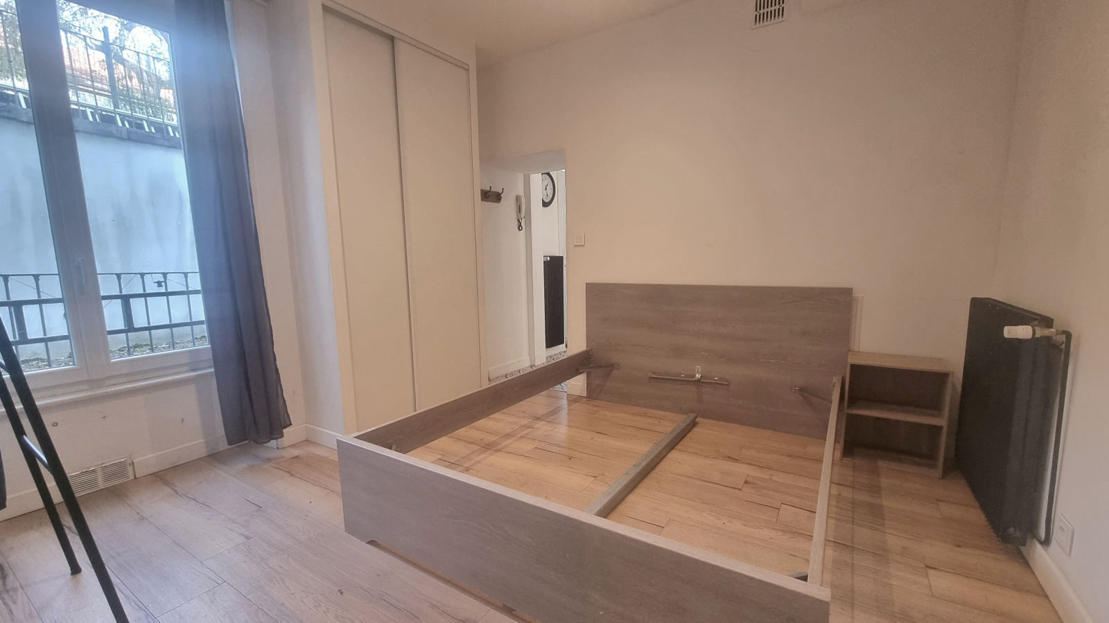 Pour la nuit, direction la chambre. Grâce à sa situation privilégiée donnant sur la cour intérieure de l'immeuble, vous êtes assuré de nuits calmes. Elle est équipée d'un lit deux places (sommier et matelas) pour un sommeil réparateur.