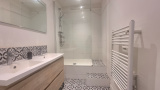Votre routine matinale se déroule dans la salle d'eau pratique et soignée, dotée d'un meuble vasque avec miroir, d'une douche spacieuse, et de l'essentiel : une machine à laver. Les WC sont séparés, un vrai plus pour votre confort quotidien !