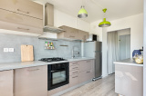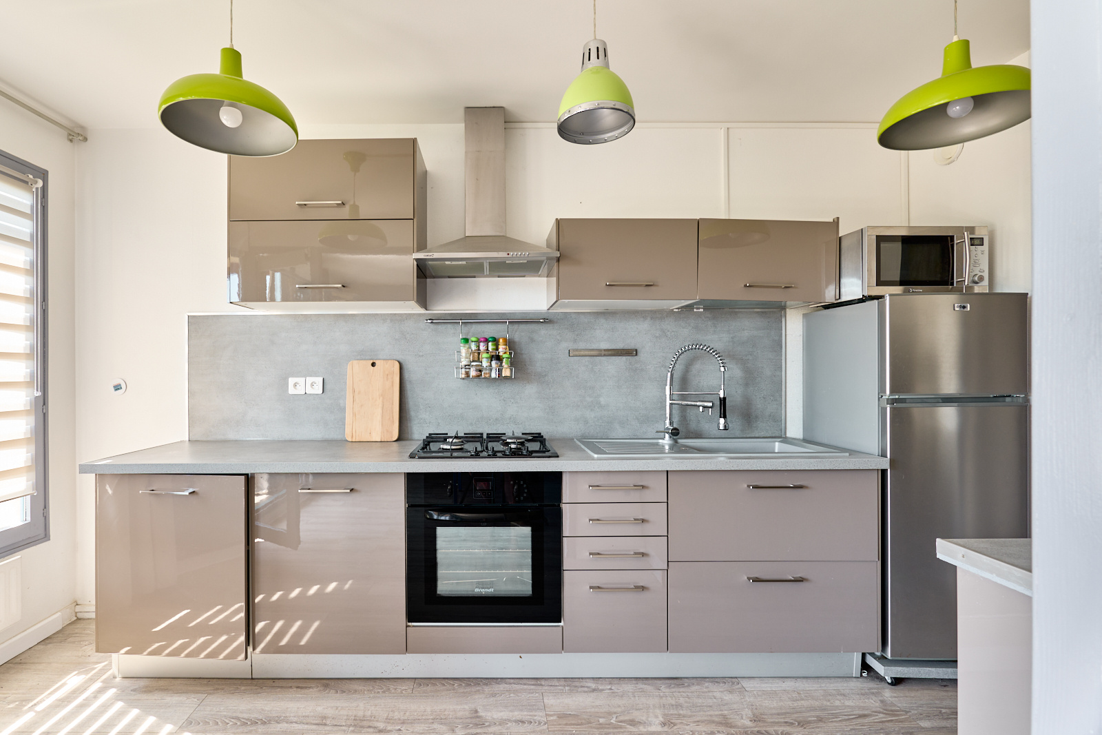 Sur votre droite, découvrez une cuisine moderne, entièrement aménagée et équipée (four, plaque de cuisson, hotte). Conçue avec de nombreux rangements optimisés, elle est idéale pour concocter de délicieux repas et partager des moments précieux en famille.