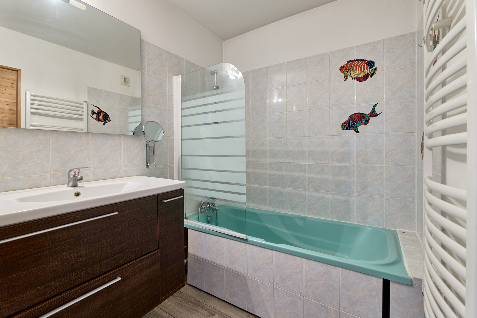 Le coin nuit, astucieusement séparé, s'ouvre sur un dégagement avec placard, menant à trois chambres douillettes. L'une d'entre elles offre un accès direct à un balcon privé, l'endroit rêvé pour savourer votre café matinal ou pour un moment de calme en soirée. Une salle de bains avec baignoire et un WC complètent ce cocon.