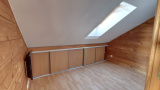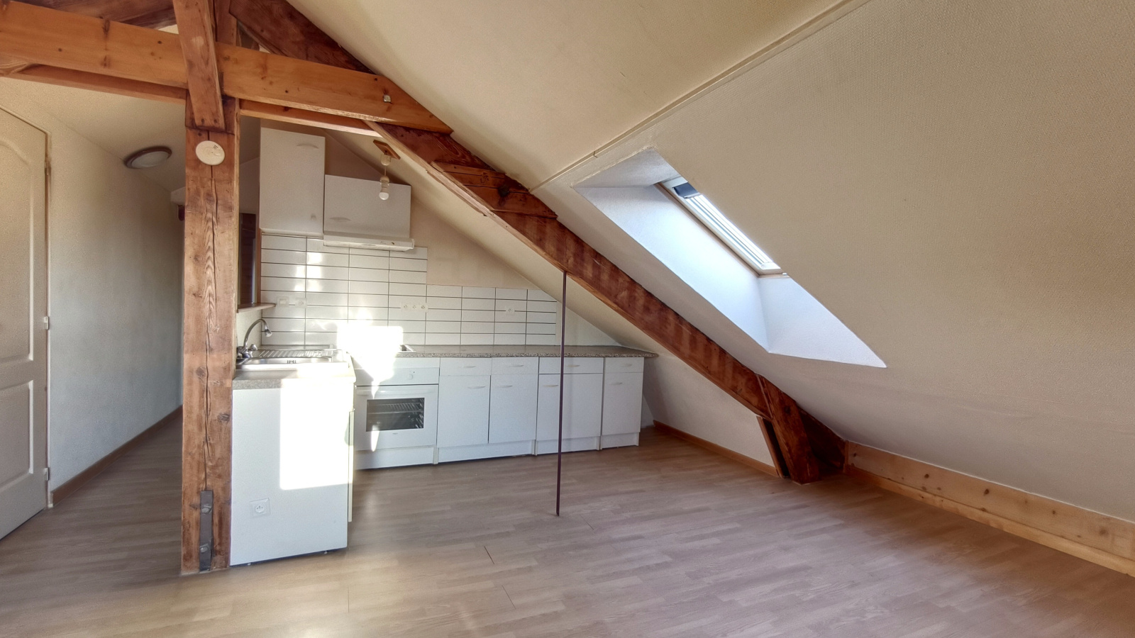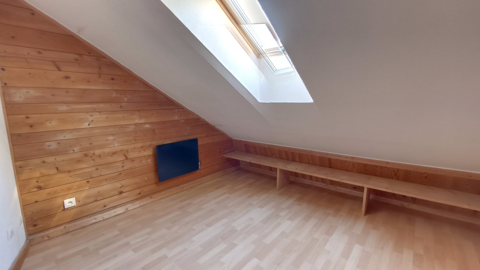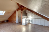 Son agencement est optimisé. L'expérience commence dès l'arrivée au dernier étage avec une entrée fonctionnelle parfaite pour aménager un vestiaire (manteaux, chaussures) et préserver l'intimité du logement. Ensuite un couloir dessert deux chambres, dont une avec placards sous pente sur mesure. La salle de bains propose le confort d'une douche et d'une baignoire, avec un WC indépendant. Un séjour baigné de lumière au style lambris bois chaleureux, avec une cuisine ouverte aménagée et équipée (four, plaques) finira par vous séduire.