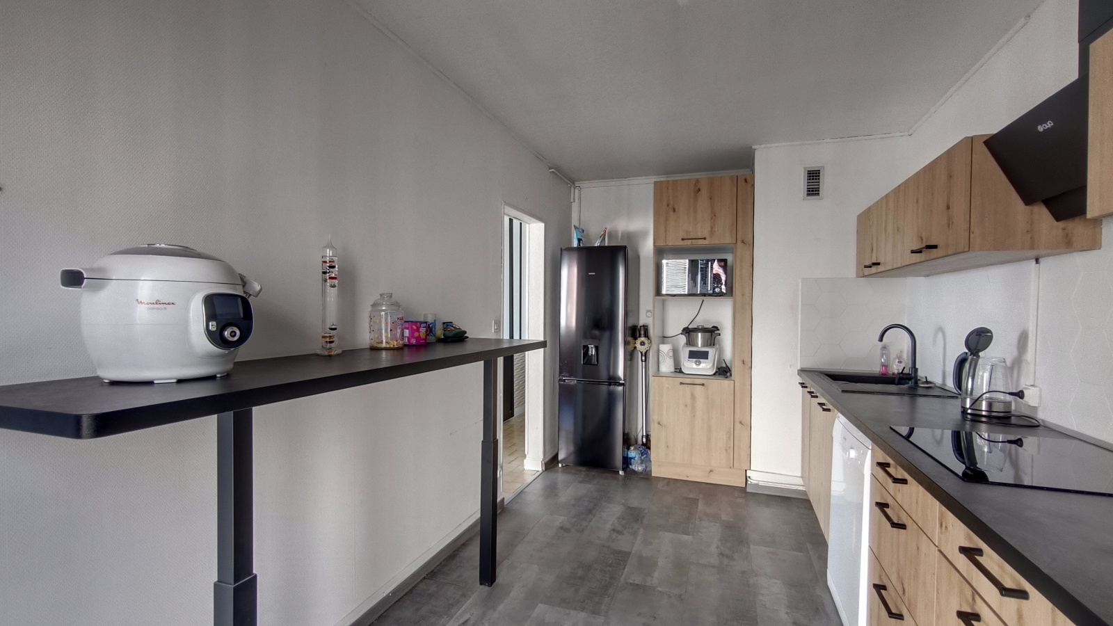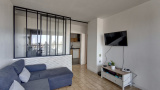 Dès l'entrée, vous serez séduit par la clarté de ce bien traversant. La pièce maîtresse ? Un vaste salon-séjour baigné de lumière, sublimé par une élégante verrière qui apporte un cachet industriel unique. Côté gastronomie, vous disposerez d'une cuisine moderne, séparée et entièrement équipée. Optimisée pour le rangement et la fonctionnalité, elle offre un cadre soigné et pratique pour cuisiner en toute tranquillité.